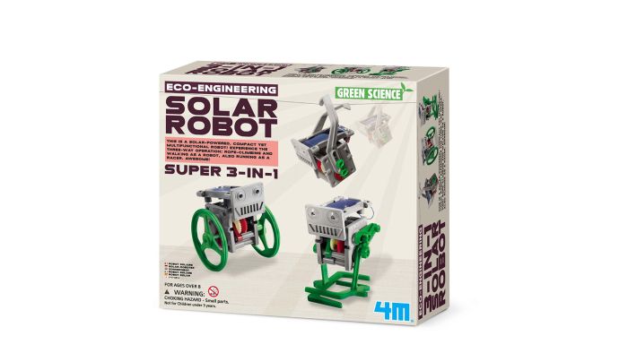 Med sættet “Mini Solar Robot” fra 4M kan du lære om bæredygtigt energi, samtidig med at du bygger en sej robot! Er vejret dårligt? Bare rolig - find en bordlampe eller en lommelygte og få robotten til at bevæge sig alligevel - batterier vil ikke være nødvendigt.