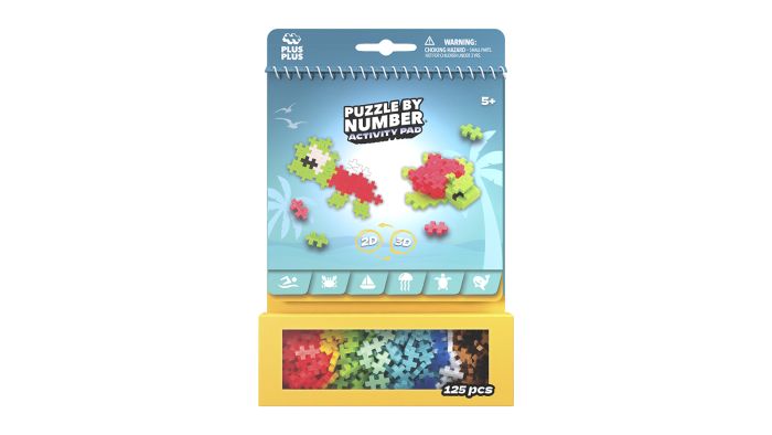Puzzle By Number Activity Pad – Ocean inviterer børn til at udforske det fascinerende dyreliv under havets overflade. Med 250 Plus-Plus brikker og en nummereret guide kan de bygge alt fra farverige fisk til havskildpadder – en kreativ og lærerig oplevelse, der styrker både finmotorik og fantasi.