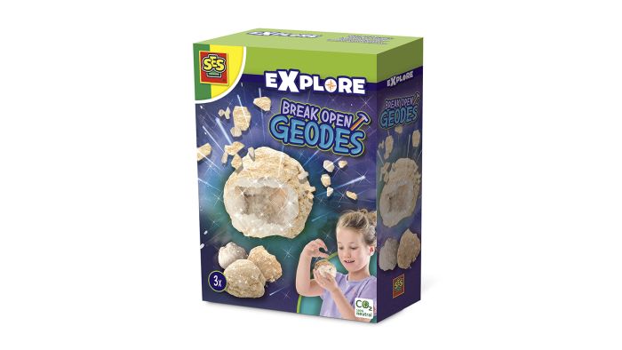 Med SES Creative’s Ægte geoder – Krystalhuler kan du åbne en lille hemmelig verden af glitrende skatte. Hver geode er et ægte naturfænomen, hvor smukke krystaller gemmer sig inde i en sten — klar til at blive opdaget og beundret.