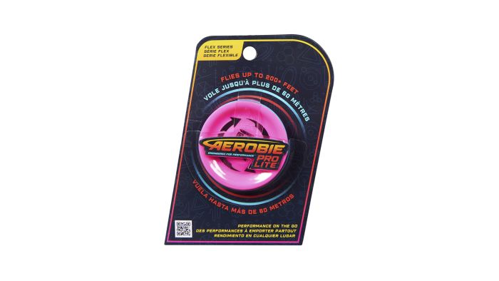 Kast og se en utrolig flyvepræstation med Aerobie Pro Lite Miniature Throwing Disc. Denne udendørs frisbee er nu smart farvekodet, så den kan anvendes af både venstre- og højrehåndskastere; skift side i forhold til din kastehånd for at maksimere ydeevnen. Du kan mødes med dine venner og se dem få Aerobie Pro Lite til at flyve op til 61 m. Disse frisbees er det perfekte kastelegetøj til spændende frisbee-spil i miniature-stil, såsom ultimate frisbee og disc-golf, eller til freestyle-leg i haven, i parken eller på stranden. Derudover kan du og dine venner udforske fede ideer og skabe jeres egne karakteristiske udendørs spil, tricks og moves. Scan QR-koden for at få tips og tricks til at lave de bedste kast og mestre tricks på Aerobie Pro Lite. Disse frisbees er designet så de nemt passer ned i lommen.