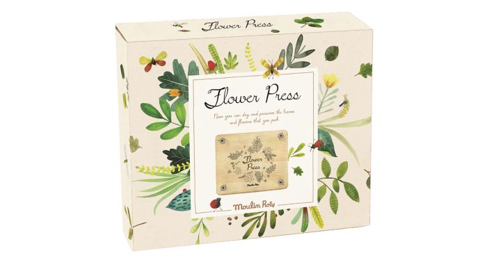 Med Blomsterpresse fra Moulin Roty kan små naturdetektiver samle blomster, blade og små skatte fra haven eller skovturen — og trylle dem om til evige minder. Blomsterpressen er smukt udført i Moulin Rotys eventyrlige stil, så den næsten i sig selv er som et lille naturmuseum.