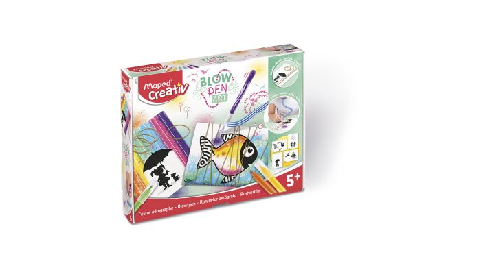 Blow Pen Art fra Maped Creativ gør det sjovt og nemt for børn at udfolde deres indre kunstner – helt uden pensler! Med pustetusch og elastiksnor-effekter kan børn skabe deres egne sprøjtede kunstværker med cool silhuetter og farvespil. Det er både magisk og mega tilfredsstillende at se farverne lande og forme unikke mønstre!