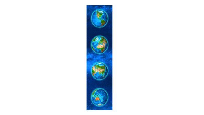 Se hele Jorden i 3D, og endda hele vejen rundt. I flot 3D-effekt kan du se jorden fra fire vinkler, og på den måde se alle vores kontinenter.