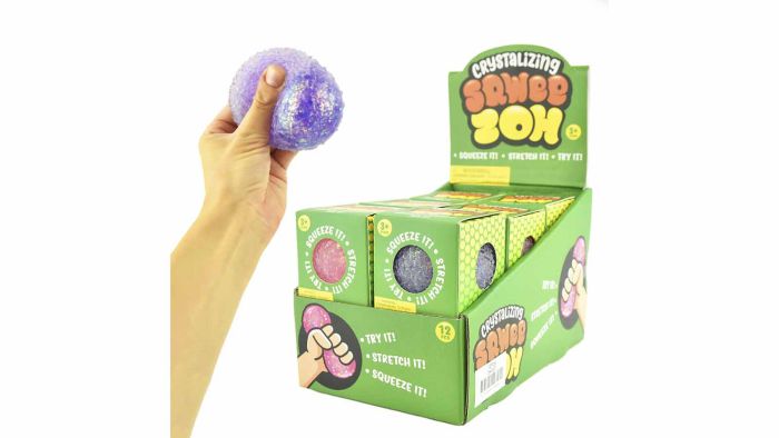 Den lyserøde bold med den krystallignende overflade er oplagt til at stimulere sanserne, afstresse eller holde hænderne beskæftiget.