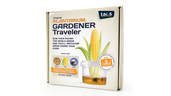 Med Traveler-sættet kan gro majs, peanuts og bomuld – hvilket er perfekt til lang rumrejser, hvor der bade skal langtidsholdbar mad til og måske du skal strike et par nye bomuldssokker undervejs?