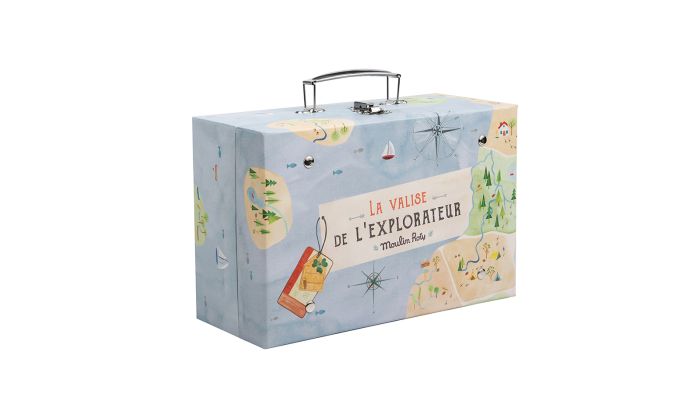Moulin Rotys opdagelsesrejendes kuffert er det perfekte rejsetilbehør for små eventyrere. Fyldt med spændende værktøjer som kikkert, forstørrelsesglas, notesbog og mere, inviterer kufferten børn til at udforske verden omkring sig – i haven, på skovtur eller på ferie.