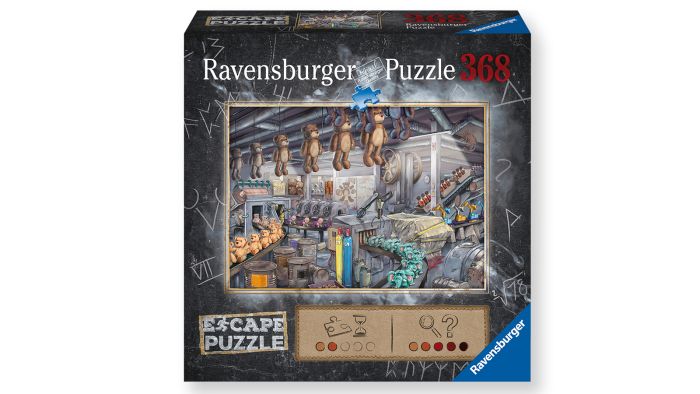 Ikke alt er som det ser ud! Læg puslespillet som gemmer på gåder du ikke kan se på æskens billede og find løsningen. kan du undslippe legetøjsfabrikken?