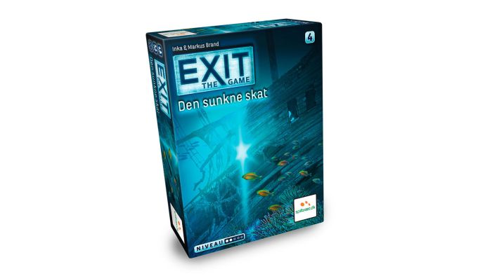 EXIT- DEN SUNKNE SKAT. I denne udgave af EXIT dykker i ned under havets overflade for at udforske et mystisk skibsvrag! Men noget går galt, og I bliver fanget dybt nede på havets bund. I spillet gælder det om at samarbejde, for at løse mysteriet og samtidig finde skatten, før i ikke har mere luft!