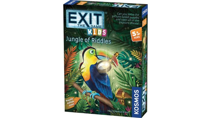 ”Exit: Kids – Jungle of Riddles” er et puslespil, der er modelleret efter escape room-konceptet. Denne version er lavet specifikt til børn, og gåderne er baseret på billeder. I har opdaget en ukendt ø og fundet ni mystiske skattekister. Løs de tricky gåder, for at åbne dem!