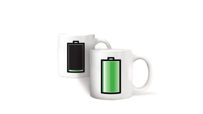 Åh nej… Flade batterier. Det er tid til at lade op, måske en kop kaffe eller en rar kop te er passende?