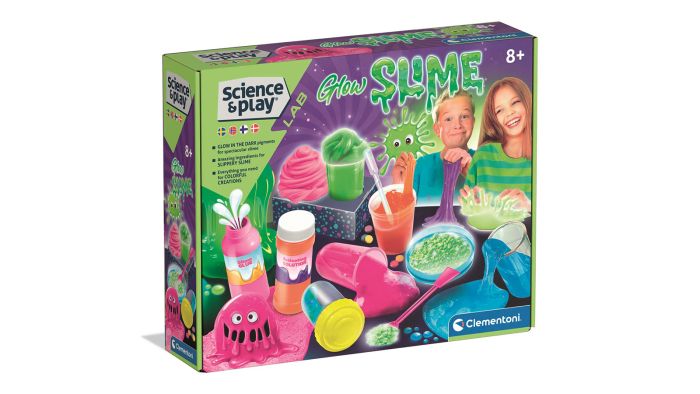 Glow Slime fra Clementoni er en sjov og farverig oplevelse, hvor du kan ælte, trække og forme slim, der lyser i mørket! Dette sæt gør almindelig slim til et magisk glødende univers – perfekt til leg på værelset, science-forsøg eller små kreative eksperimenter med farve og konsistens.