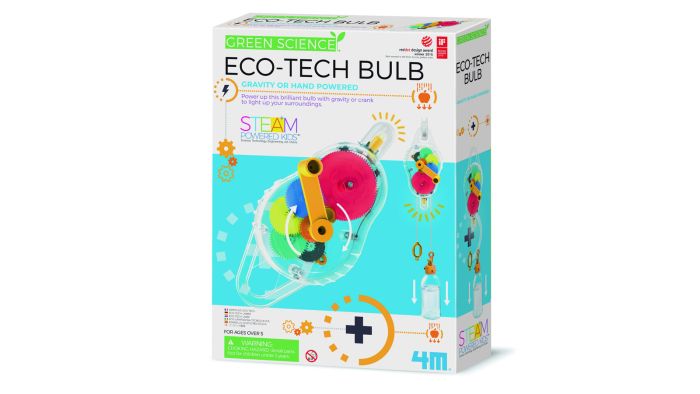 Lys idé: byg din egen lampe! Med Green Science Eco-Tech Bulb kan børn eksperimentere med elektricitet, genbrug og bæredygtig energi i ét og samme sæt. Lampen samles af dele, der med vilje ligner noget, man kunne have fundet i en genbrugskasse – men det virker, og det lyser!