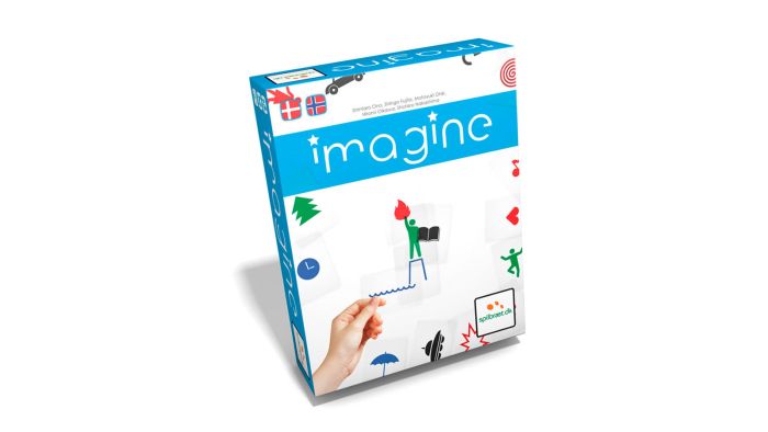 Imagine er selskabsspillet, hvor du ikke må sige noget. Du skal forklare dit koncept (film, sted, person etc.) med de 60 gennemsigtige kort. Kombiner kortene ved at lægge dem oven på eller ved siden af hinanden, og få de andre spillere til at gætte det.