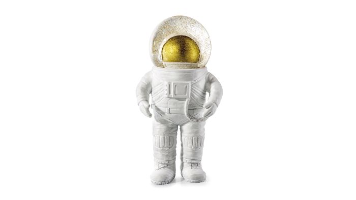 Finurlige udgave af den traditionelle snekugle. Ryst kæmpe astronauten og lad den guldfarvede glimmer fortrylle dig. Den perfekte gave, der kan pryde ethvert skrivebord eller vindueskarm.