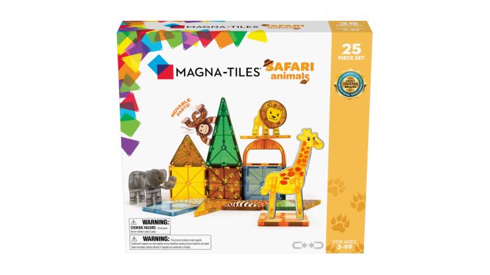 Tag på en sjov safari med Magna-Tiles Safari Animals 25-dele sæt. Nysgerrige børn kan lade kreativiteten vise vejen, når de følger hvert dyrs fodspor og bygger levesteder i livlige farver. Med safarisættet er der mange måder at bringe naturen til live i dit hjem eller klasseværelse.
