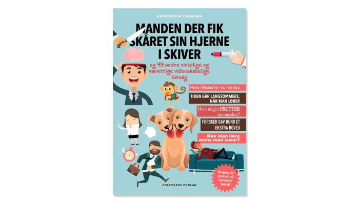 Børn glædes ved en god historie og deres umættede nysgerrighed over for verden har inspireret Kristoffer Frøkjær til at skrive denne bog om virkelige videnskabelige forsøg. I bogen kan du f.eks. Læse om den russiske videnskabsmand, der syede et ekstra hoved på en hund, lægen der spiste bræk fra dødsyge menneskeer eller CIA, der vil dressere en kat til at blive spion og mange andre sjove forsøg.