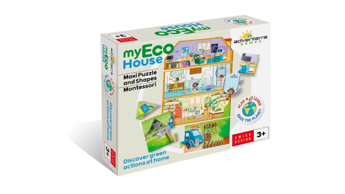 MyEco House er et kreativt og lærerigt puslespil, der introducerer børn til miljøvenlige handlinger i hjemmet. Ved at samle fire store puslespil, der repræsenterer forskellige rum i et hus – køkken, badeværelse, stue og soveværelse – opdager børn handlinger, der skader miljøet. Ved at matche og indsætte de korrekte geometriske former, lærer de at erstatte disse med bæredygtige vaner, hvilket fremmer observationsevner og miljøbevidsthed.?