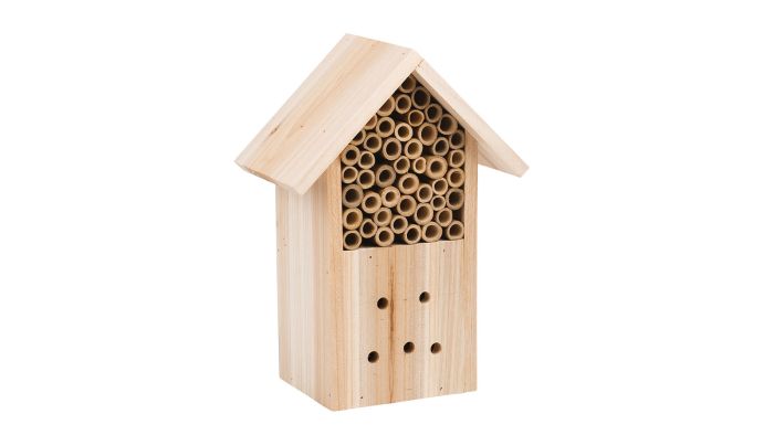 Insekthotellet har to typer insektbolig, et lukket kammer nederst, som kun er tilgængeligt via små huller. I det kammer kan de insekter der har brug for at gemme sig helt, eller bygge et bo, være. Det øverste kammer er fyldt med korte stykker bambus, og du kan selv tilføje tørt græs, lidt mos eller små grene og blade til mellemrummene. Insekterne vil så kunne finde ly i de hule bambusrør, og vil både kunne bo der selv, men også finde plads til deres æg, eller overvintringer.