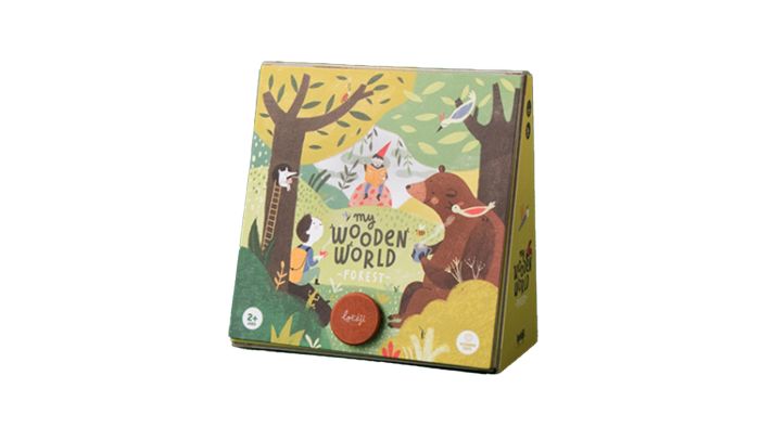 Med My Wooden World får I jeres helt egen miniverden, hvor æsken kan foldes ud og danne en flot ramme for legen. De store figurer kan sættes oven på de små og skjule dem, hvilket giver endnu flere muligheder til legen.