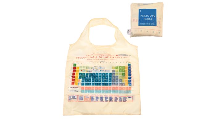 Stort indkøbsnet, med indbygget opbevaringslomme, og med det periodiske system på begge sider.