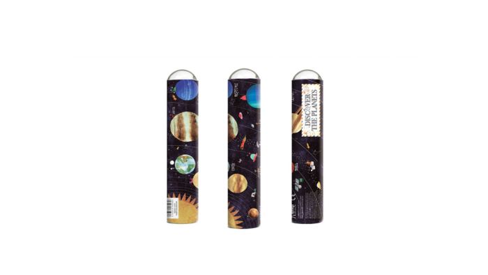 Flot rumtematiseret kalejdoskop, fremstillet i pap og glas.