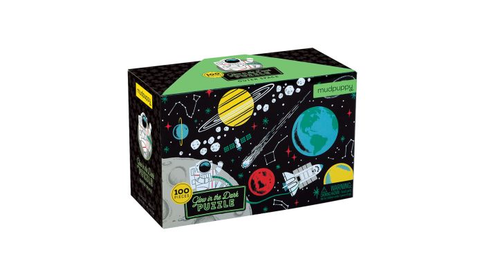 Rejs til en anden galakse med Mudpuppy's Outer Space Glow-In-the-Dark-puslespil. Når du har sammensat de 100 brikker, skal du slukke lyset for, at se puslespillet lyse op i mørket!