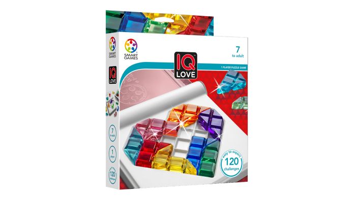 IQ Love er en af de store SmartGames hjernevridere. Og ikke nok med at det er lidt større end de andre IQ spil, der er også to spilleplader, og derfor to måder at spille på.
