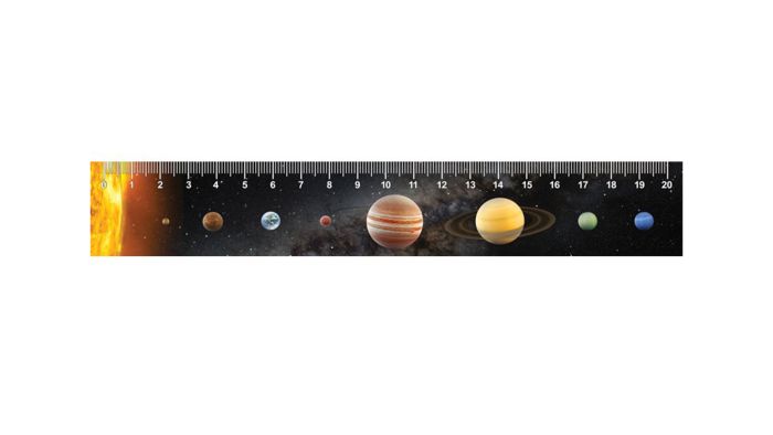 På Linealens bagside kan du se hver planets størrelse og selvfølgelig deres navne.