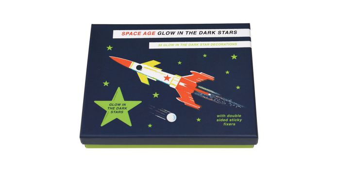 Stjernerne er pakket i en flot æske med en rumraket.