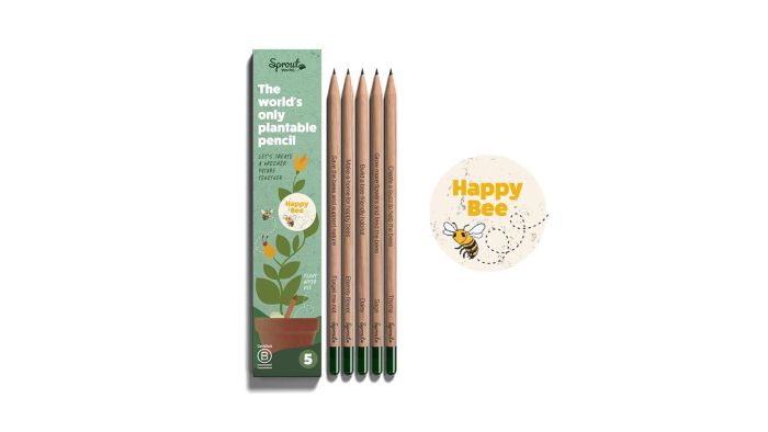 Sprout Happy Bee Edition er et sæt med 5 fine blyanter, der ikke bare lader dig slippe kreativiteten løs på papiret, men også giver bierne lidt ekstra kærlighed bagefter. Når blyanten er slidt ned, planter du den i en potte eller i haven – og vupti, så spirer den frem som blomster, som bier og sommerfugle vil elske.