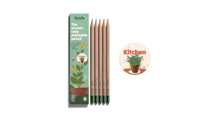 Sprout Kitchen Edition er et sæt med 5 skønne blyanter, der lader din kreativitet blomstre på papiret – og bagefter i køkkenet! Når du har brugt blyanten færdig, kan du nemlig plante den i en potte eller i haven og se den forvandle sig til lækre krydderurter eller grønt, lige til at bruge i madlavningen.
