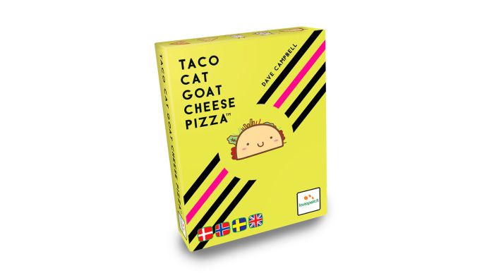 Del kortene ud, så I kan skiftes til at vende et kort, mens i sammen fremsiger remsen ”Taco Cat Goat Cheese Pizza”. Hver gang et vendt kort matcher det i siger, altså når i vender et kort med en pizza på, mens i siger ”Pizza” – så er det med at være hurtig til at smække den anden hånd på kortet, for den der kommer sidst må samle kortene op og føje dem til sin egen bunke.