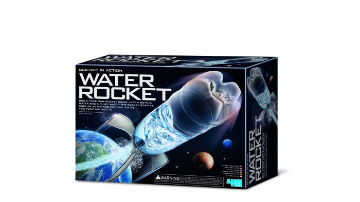 Byg din egen vandraket. Det eneste du skal bruge er en tom flaske, vand og en cykelpumpe. Se derefter raketten flyve op til 30 meter op i luften. Produktet er tænkt som undervisning, der demonstrerer videnskabelige principper på en sjov måde.