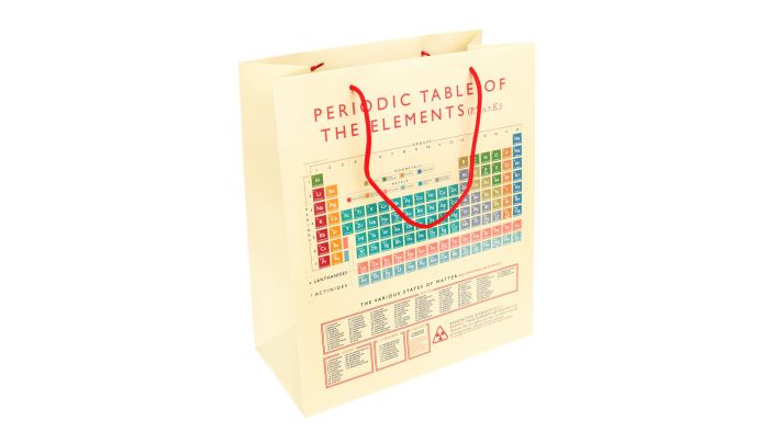 Hvem siger det ikke skal være lærerigt at modtage en gave? Her har vi en gave i gaven. Lær om det Periodiske System med vores gavepose med det Periodiske System som motiv.
