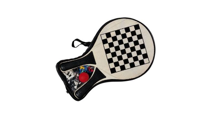 Strandspillet består af 2 træketchere med mulighed for at spille Ludo på den ene og skak på den anden. Er I ikke til de stillesiddende spil medfølger der en bold til en god omgang tennis.