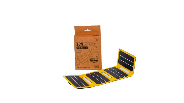 Sunmoove solcellen producerer 6,5 Watt, og har indbyggede LED-ladeindikatorer.